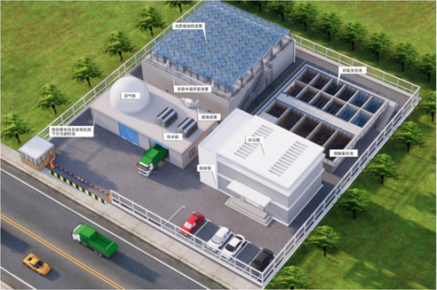 主要采用生化综合中常温厌氧处理系统,该技术配备有垃圾预处理系统、生化综合中常温厌氧处理系统、恒温系统、沼气提纯净化装置、沼气发电系统和生化综合好氧水处理系统,最终将餐厨垃圾转化为电力进行利用,沼液处理后可在场区内回用或排入市政污水管网,全面解决餐厨垃圾的污染,并对其实现资源化利用。